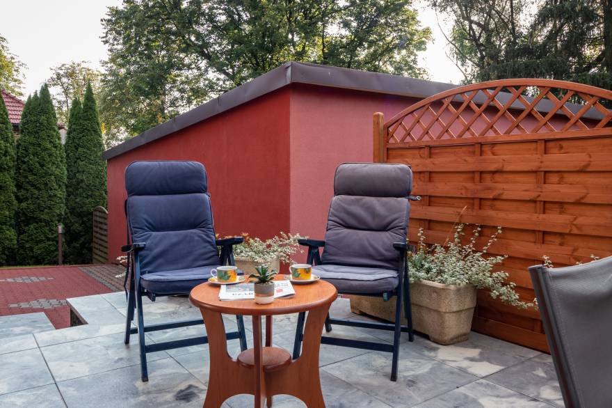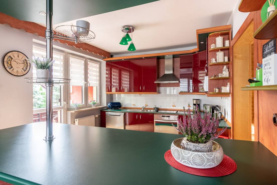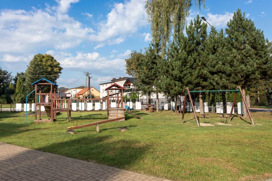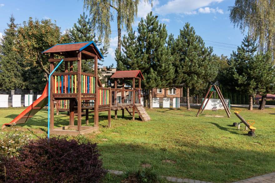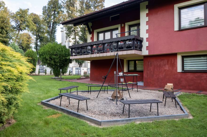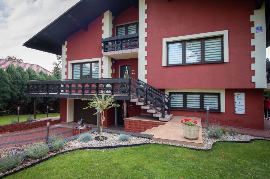 The holiday home “Villa Jurka” is an excellent alternative to classic hotel rooms. Its location and spaciousness make it an ideal option for those who value peace and independence, travel in larger groups or want to hold a quiet holiday. “Villa Jurka” is a ten-person, 250 m² building offering five bedrooms with large double beds and garden views, a living room with a fireplace, a fully equipped kitchen, a balcony with a Hollywood swing and two bathrooms. The house comes with a garden with a terrace, a barbecue fireplace with all the necessary equipment and private parking.